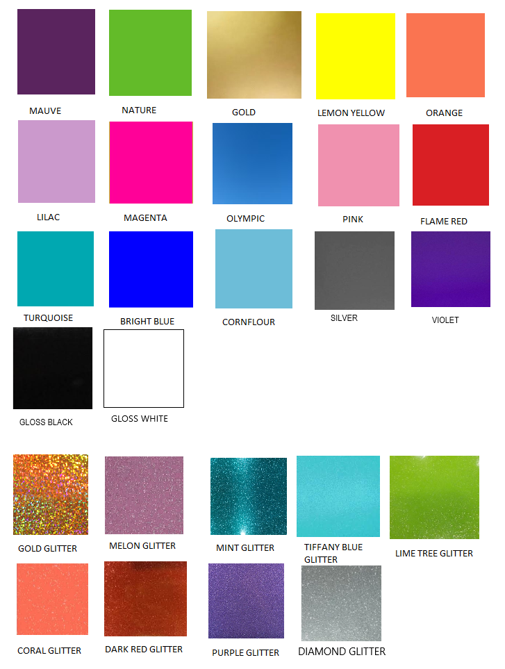 Multiple colours to choose from in both plain and glitter.